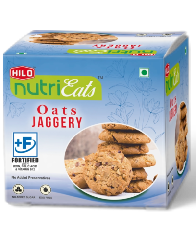 These biscuits are majorly made from Oats & Jaggery with flavour of Cinammon & fortifed with Iron, Vitamin B12 & Folic Acid